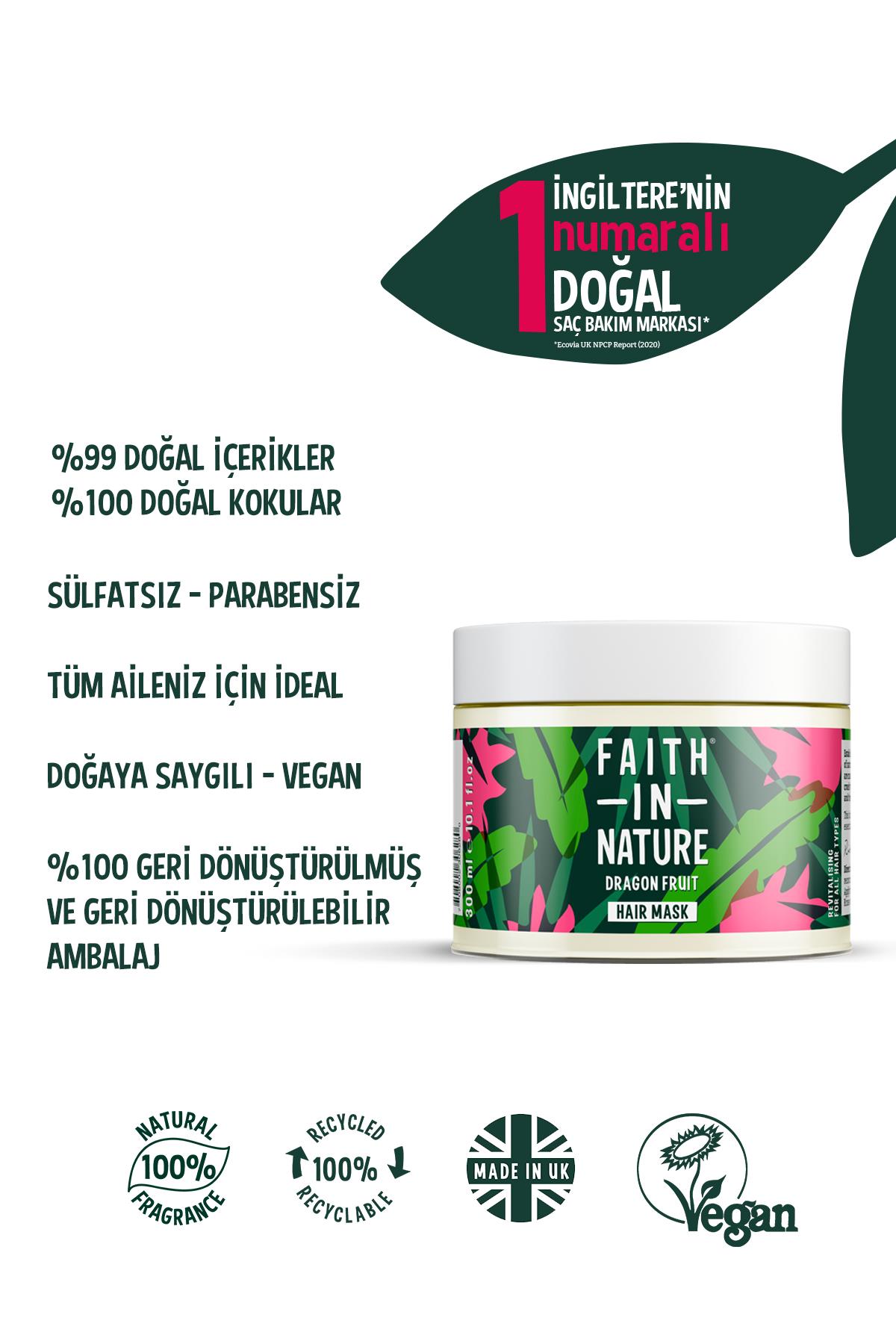 Saçlarınızı her zamanki gibi şampuanladıktan sonra saç maskesini ıslak saçınıza uygulayın. Kolay açılan ve bakımlı saçlara ulaşmak için saçınızın ihtiyacına göre 3 ila 20 dakika arası bekleterek ılık su ile durulayın.En iyi sonuç için saç tipinize uygun Faith In Nature şampuanı ile birlikte kullanmanız tavsiye edilir.