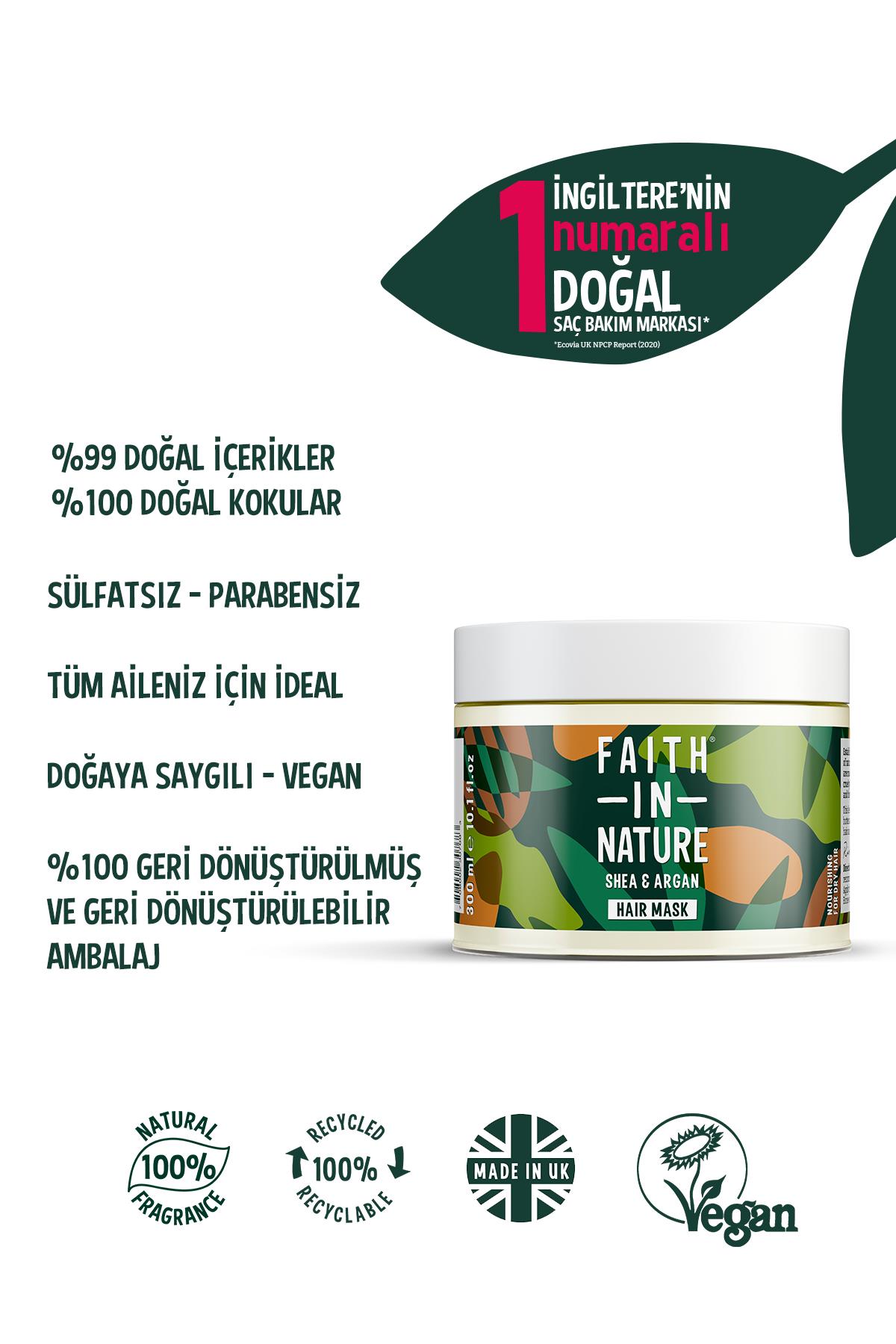 Saçlarınızı her zamanki gibi şampuanladıktan sonra saç maskesini ıslak saçınıza uygulayın. Kolay açılan ve bakımlı saçlara ulaşmak için saçınızın ihtiyacına göre 3 ila 20 dakika arası bekleterek ılık su ile durulayın.En iyi sonuç için saç tipinize uygun Faith In Nature şampuanı ile birlikte kullanmanız tavsiye edilir. durulayın.