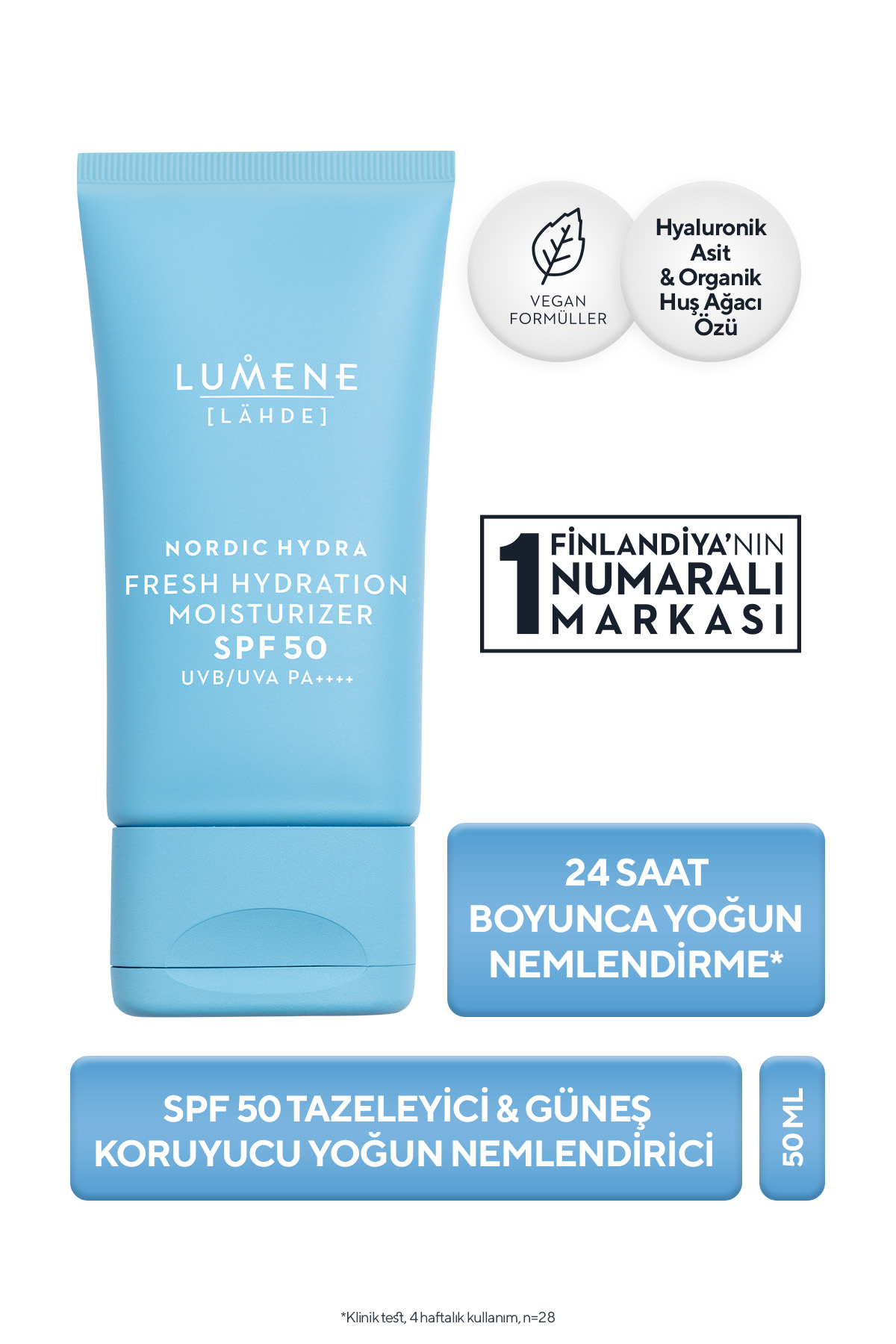 SPF 50 koruma faktörü ile güneşin UVA/UVB ışınlarına karşı güçlü bir kalkan oluştururken, organik huş ağacı özü ve iki farklı moleküler ağırlıktaki hyaluronik asit ile cildinizi uzun süre nemli ve canlı tutar.