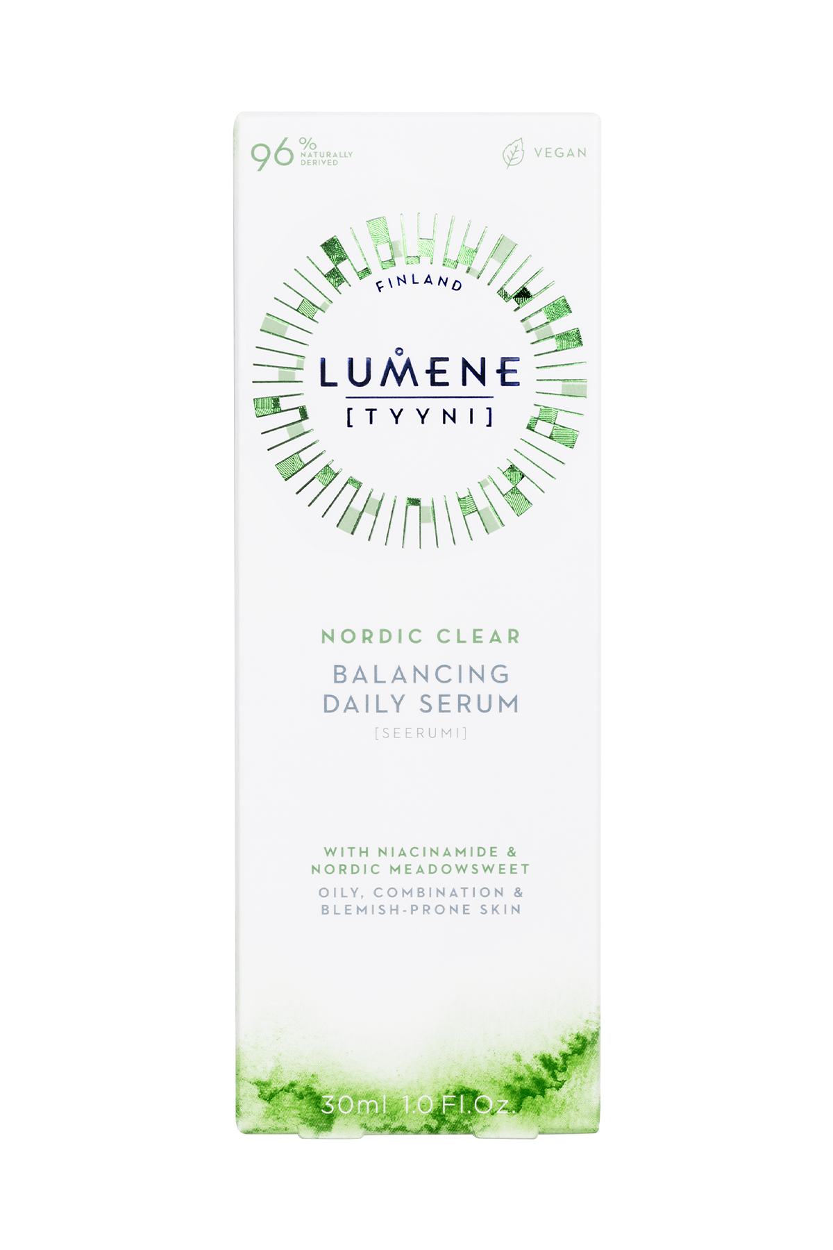 Yağlı, karma ve akneye eğilimli ciltlere özel formüle edilmiş Lumene Sebum Dengeleyici Serum, güçlü dengeleyici İskandinav Keçisakalı ve sakinleştirici İskandinav Gül Kökü Özü karışımı ile cildi anında nemlendirirken aşırı parlaklığı azaltır, gözeneklerin, aknelerin ve kızarıklıkların görünümünü azaltmaya yardımcı olur.