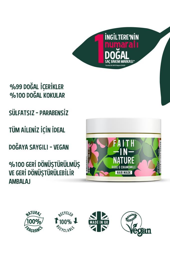 Saçlarınızı her zamanki gibi şampuanladıktan sonra saç maskesini ıslak saçınıza uygulayın. Kolay açılan ve bakımlı saçlara ulaşmak için saçınızın ihtiyacına göre 3 ila 20 dakika arası bekleterek ılık su ile durulayın.En iyi sonuç için saç tipinize uygun Faith In Nature şampuanı ile birlikte kullanmanız tavsiye edilir.